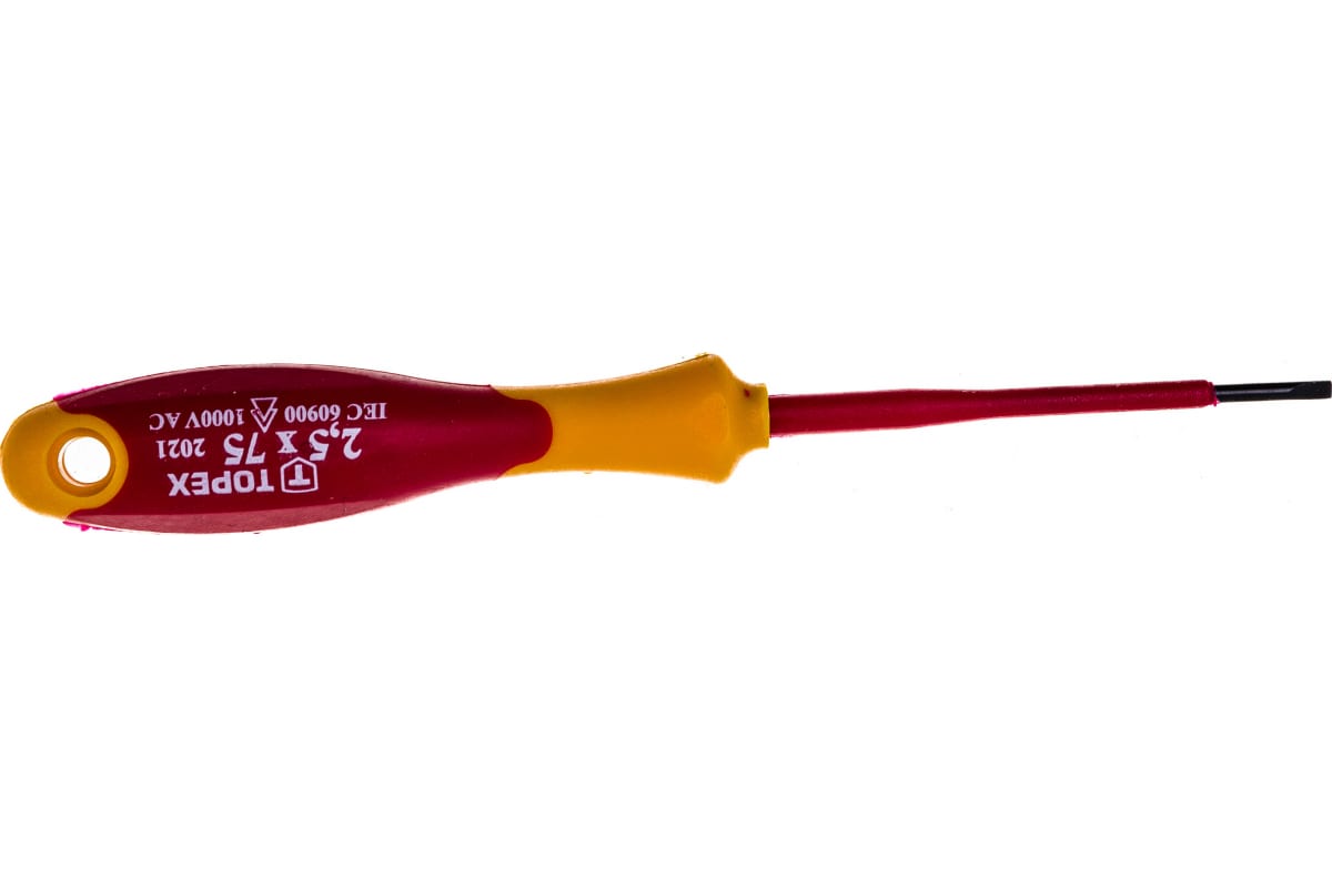 Отвертка шлицевая 1000 В TOPEX 39D470 предназначена для работы под напряжением до 1000 В. Изготовлена из высококачественной хромомолибденовой стали, изолированная. Эргономичная пластмассовая рукоятка, покрытая антискользящим материалом, обеспечивает комфорт и безопасность во время работы.