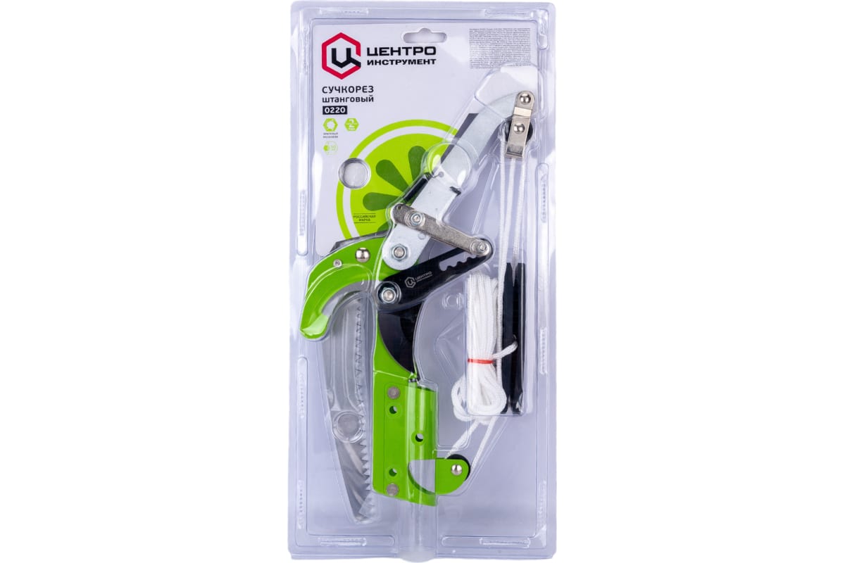 Штанговый сучкорез Центроинструмент 0220 используется для работ на садовом участке. Данный инструмент можно использовать для работы в труднодоступных местах (кроны деревьев и кустарников) при использовании телескопической штанги 0220-1 (не поставляется в комплекте). Длину штанги можно регулировать до 2 м 40 см.