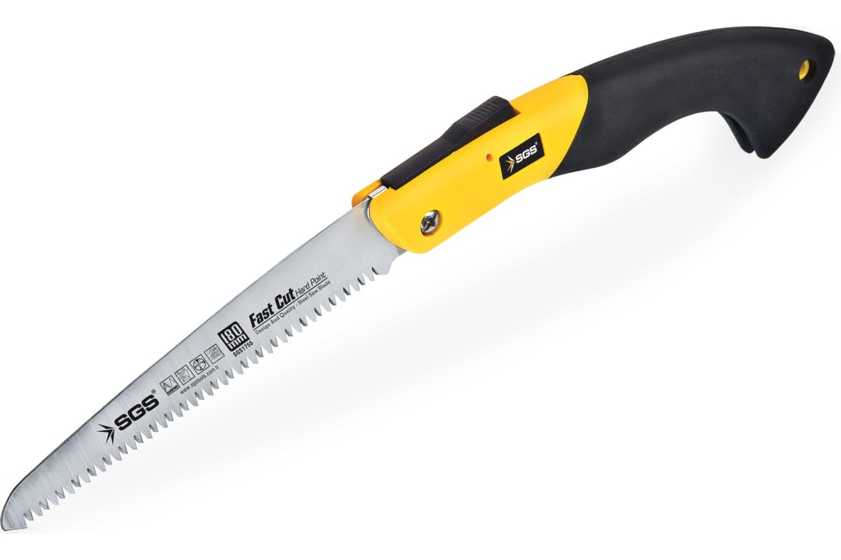Складная ножовка для обрезки сучьев и веток SGS 1755 300 мм, в ножнах 1755SGS используется для пиления веток, сучьев, кустов и других работ. Качественное лезвие выполнено из высокоуглеродистой стали SK5 стали, благодаря чему обеспечивает четкий и чистый распил. Специальная заточка зубьев гарантирует высокую эффективность работ. Эргономичная рукоять обеспечивает надежный хват и комфортное использование. Складная конструкция служит для удобного и безопасного хранения и переноски.
