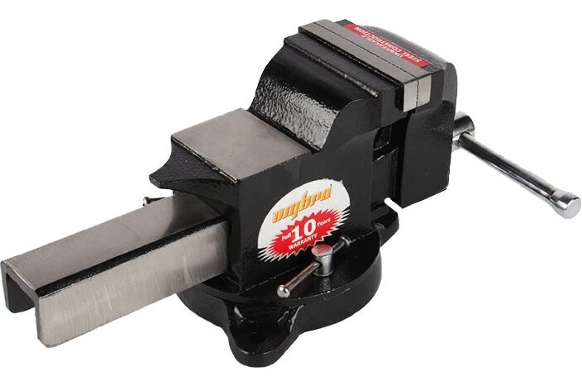 Слесарные поворотные тиски, 100 мм Ombra A90044 55613 - это универсальное приспособление, которое находит применение как в специализированных мастерских, так и в домашнем хозяйстве. Устройство позволяет надежно зафиксировать профильную или круглую заготовку для её последующей обработки (сверление, пиление, и т.д.). Поворотный механизм тисков позволяет устанавливать их в любом удобном для оператора положении (для фиксации угла поворота предусмотрена специальная рукоятка). Губки данной модели (сменные, 100 мм) обладают сетчатой насечкой. Зажим заготовок осуществляется посредством эргономичной рукоятки с широкой поверхностью хвата, при этом ее вращение не требует от пользователя значительных физических усилий. Инструмент имеет широкое основание, которое в целях удобства и безопасности можно закрепить на верстаке - для этого предусмотрены 3 отверстия. Тиски защищены от химических и механических воздействий (технология отделки Triple Coating). Оснащены наковальней.