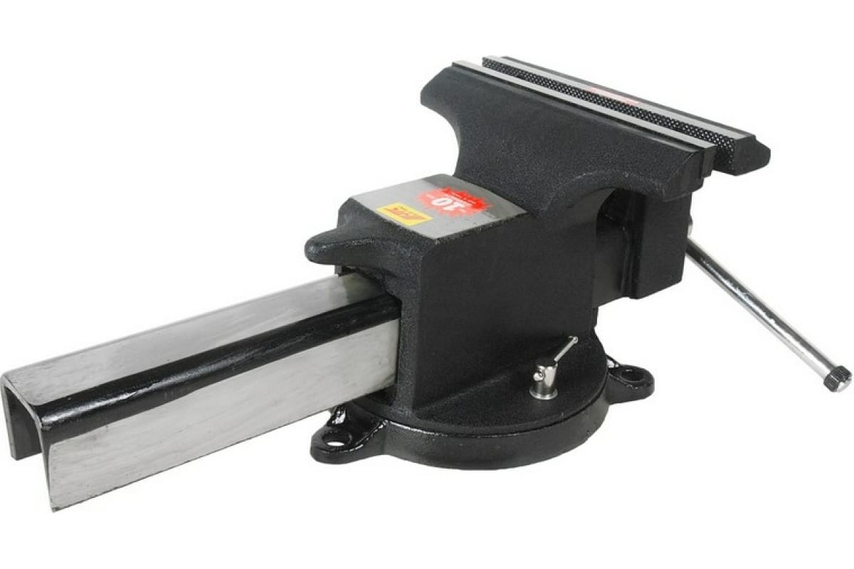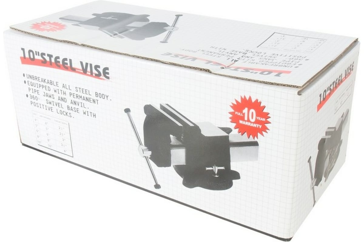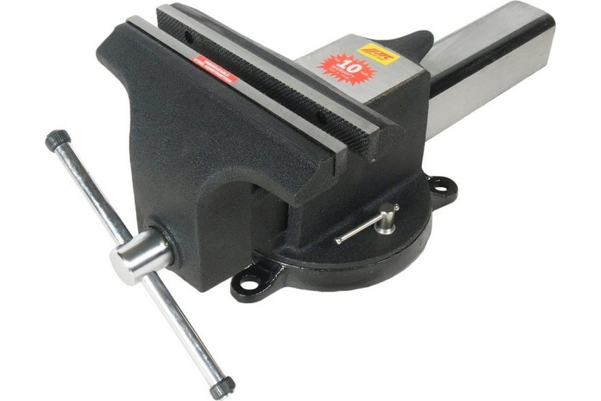 Слесарные поворотные тиски с захватом 10 дюймов JTC 3125 из легированной стали применяются для зажима деталей в ходе обработки, например, нарезания резьбы. Ширина губок позволяет фиксировать заготовки большого размера. Значительный вес и установочные отверстия гарантируют устойчивость тисков на верстаке.