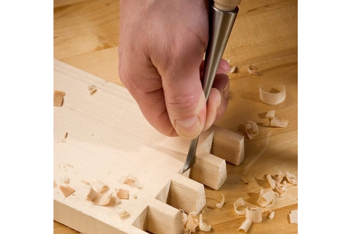 - Рукоять выполнена из граба (hornbeam) - красивой и очень твердой породы, что удобно при работе с киянкой;