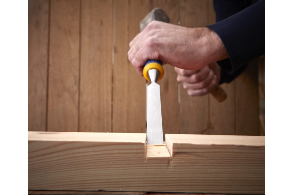 Стамеска, 22 мм IRWIN MS500 10503667 - простой и удобный режущий инструмент для строгания или выборки углублений в древесине. Закаленное стальное полотно подходит для выполнения особо сложных работ. Усиленный металлический наконечник успешно выдержит удары молотком.