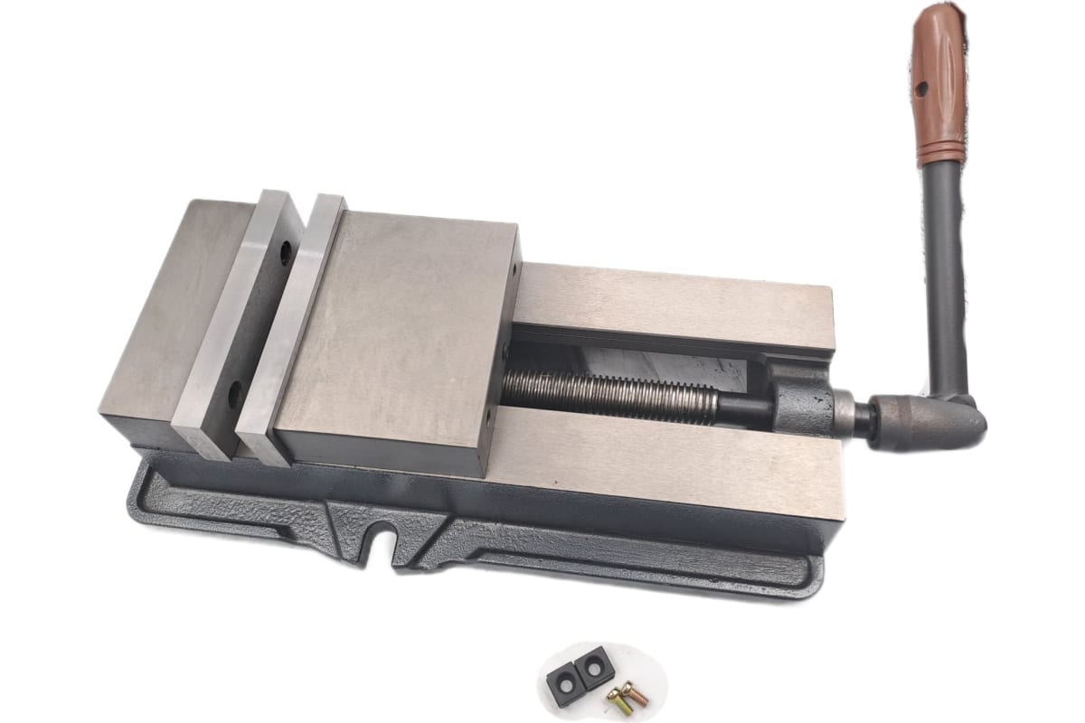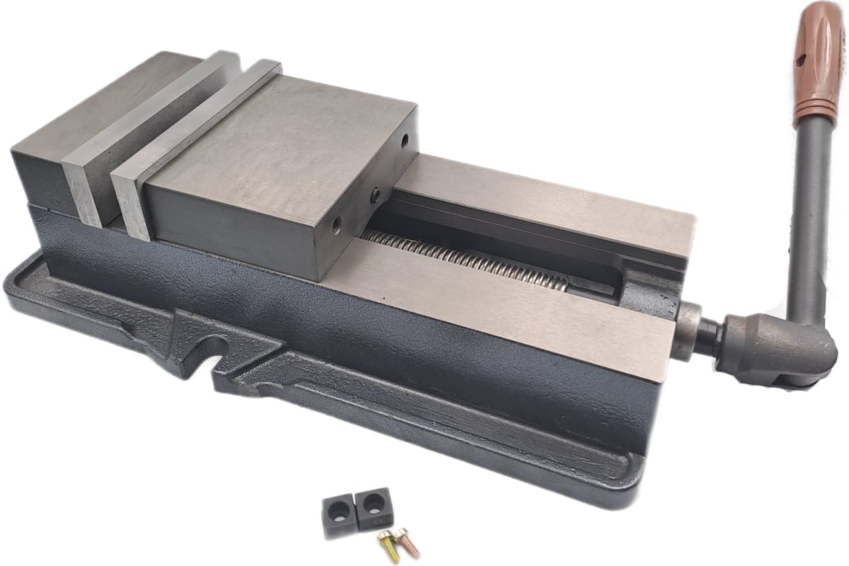 Тиски используют при пилении, строгании, сверлении и в других операциях по обработке заготовок. Они предназначены для неподвижной фиксации обрабатываемого материала. Станочные тиски применяются совместно с различными станками самых разных размеров. Для крепления к станку в основании инструмента имеются два боковых выступа с длинными пазами. Подвижная губка и сама станина изготавливаются из стали.