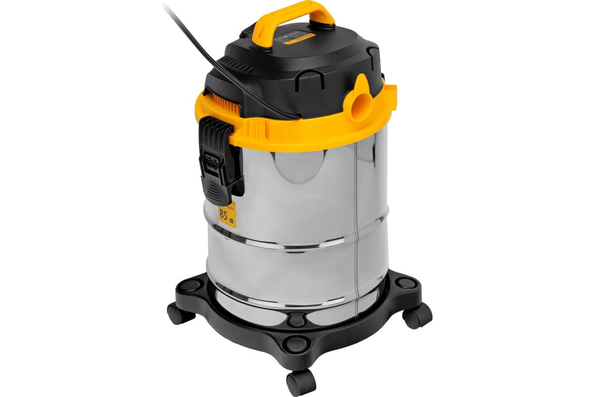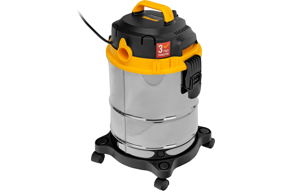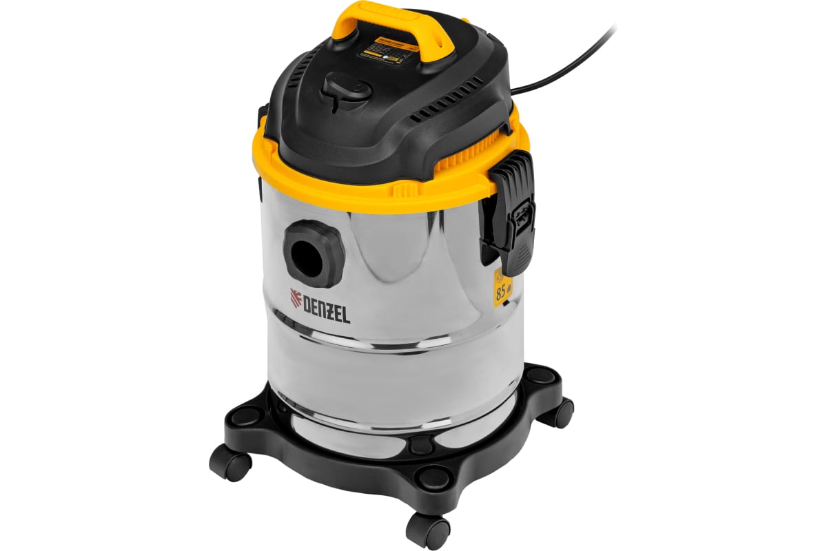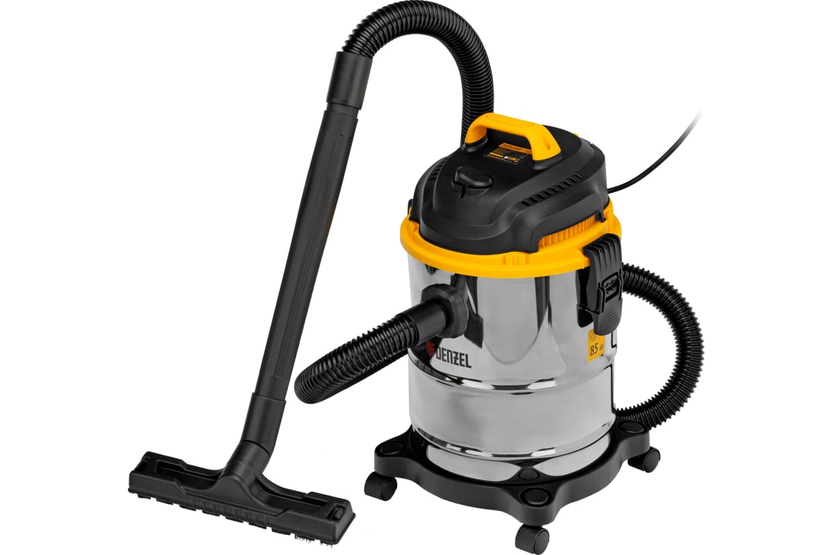Пылесос строительный Denzel SVC15 28201 мощностью 1200 Вт, с баком объемом 15 л и шлангом длиной 2 м, предназначен для уборки бетонной, кирпичной пыли, опилок, стружки и других твердых отходов. Функция влажной уборки позволяет собирать воду с пола.