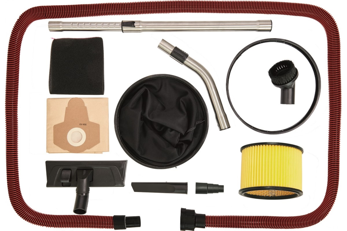 - 1 фильтр из поролона для влажной уборки, 1 гофрированный фильтр и 1 бумажный мешок