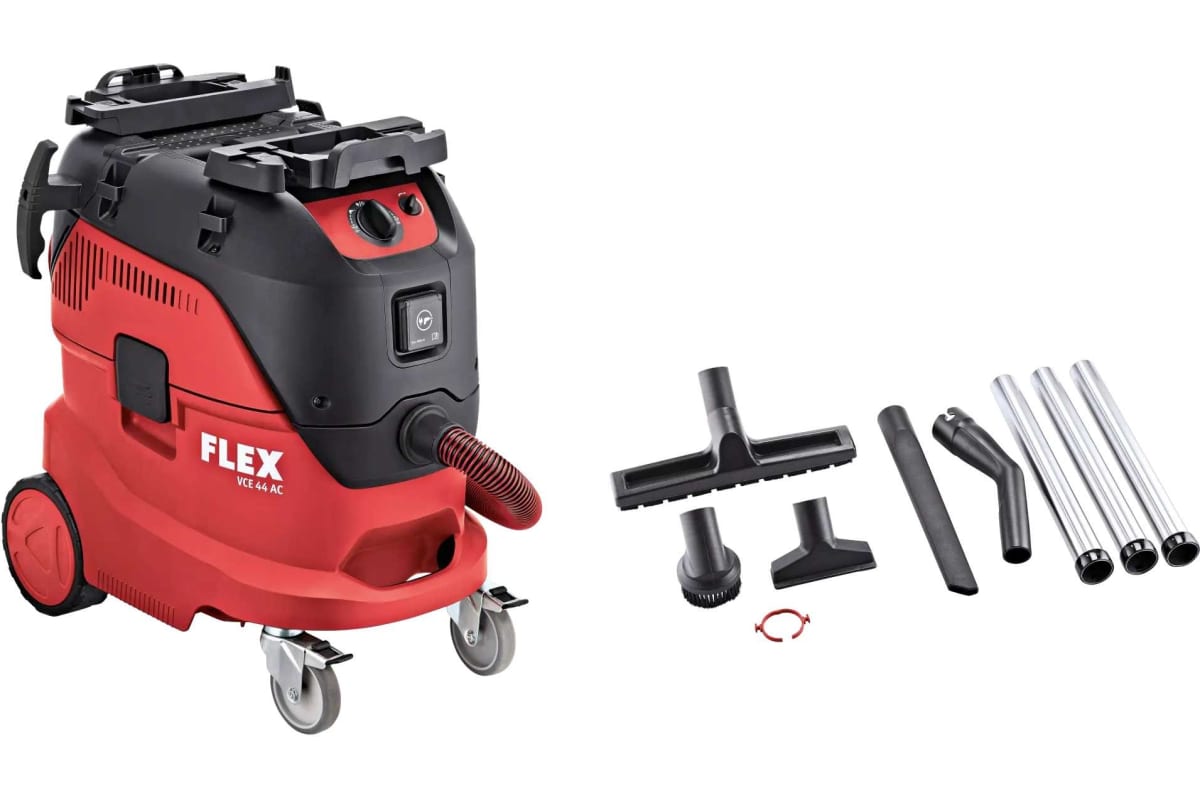 Строительный пылесос FLEX VCE 44 L AC-Set 42 л, класс L 465690 идеален для уборки стройплощадок, мастерских, производственных помещений. Имеет большую мощность всасывания и высокое разрежение, что обеспечивает эффективное пылеудаление.