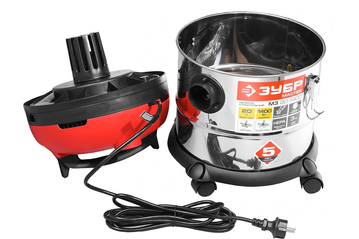 Строительный пылесос ЗУБР МАСТЕР М3-20 ПУ-20-1400 М3 используется для уборки производственных помещений и строительных площадок. Мощный двигатель 1400 Вт обеспечивает отличную производительность и большую силу всасывания. Благодаря наличию встроенной розетки к пылесосу можно подключать электроинструмент мощностью 100-2000 Вт. Корпус бака сделан из нержавеющей стали, что гарантирует долгий срок службы и устойчивость к коррозии.