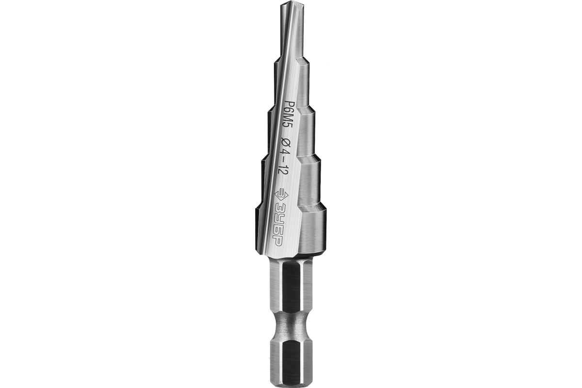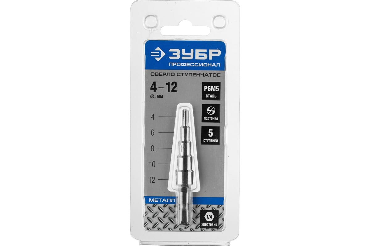 Сверло ступенчатое ЗУБР 29670-4-12-5_z01 предназначено для сверления металлических конструкций и заготовок, листовых материалов, цветных металлов, пластика. Рекомендованы для использования для сверления листового металла толщиной до 4мм, цветных металлов, пластмасс и других материалов. Крестообразная подточка позволяет начать сверление без предварительных работ. Угол заточки при вершине равный 135° для ускорения процесса сверления. Сверло изготовлено методом вышлифовки из быстрорежущей стали Р6М5 и соответствует классу точности "А1" .