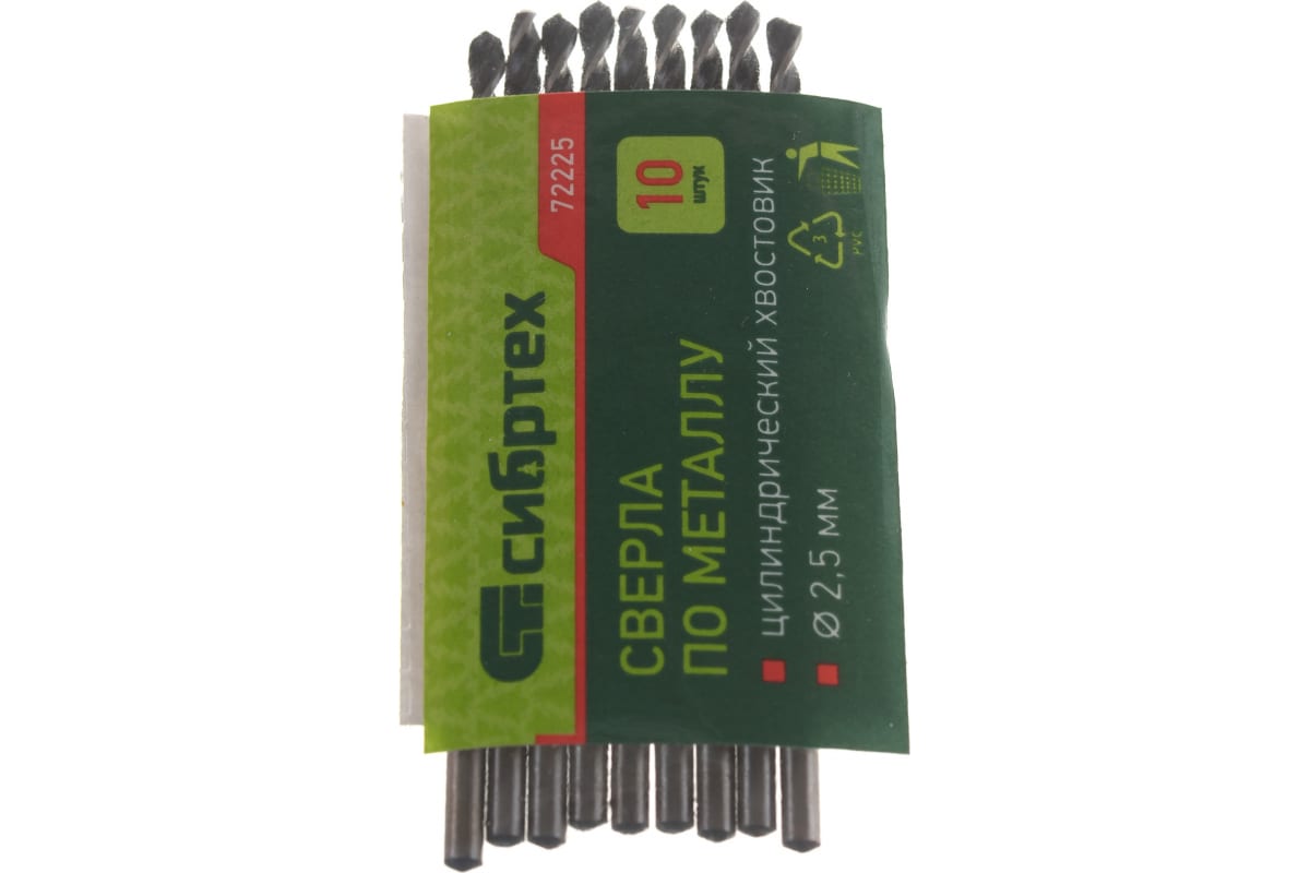 Сверло по металлу Сибртех 72225 из быстрорежущей стали, с цилиндрическим хвостовиком, 10 шт. в упаковке, имеет угол заточки 118 градусов и используется для получения отверстий диаметром 2,5 мм в цветных и тяжелых металлах. Инструмент применяют в профессиональных и бытовых целях.