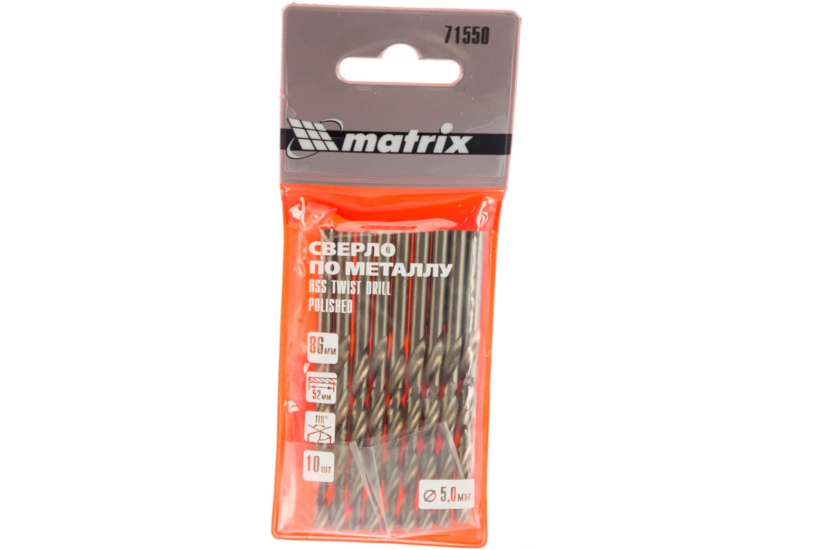 Полированное сверло по металлу Matrix 71550 из стали HSS, с цилиндрическим хвостовиком, 10 шт. в упаковке, используется для получения отверстий диаметром 5,0 мм. Угол заточки составляет 118 градусов, поэтому сверло оптимально для работы с черными металлами, сталью, чугуном и твердой бронзой.