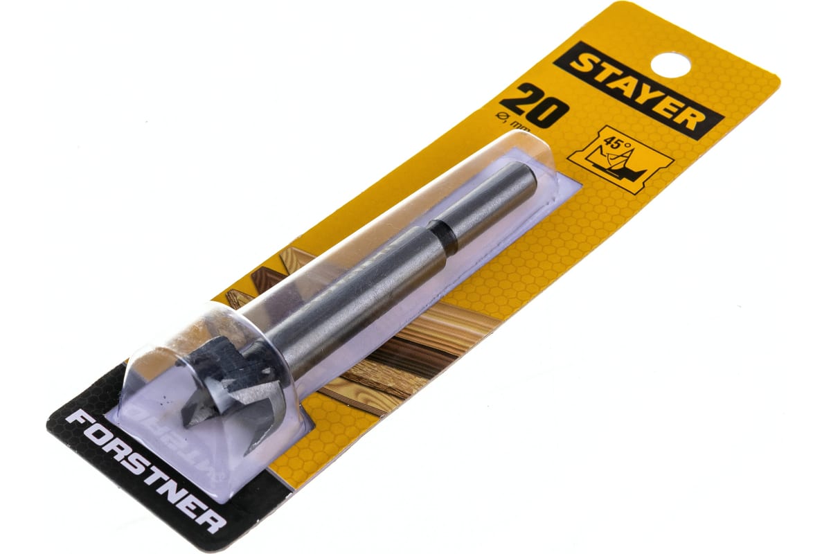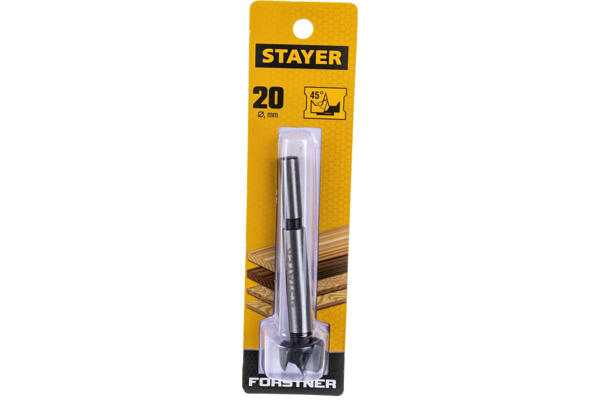 Сверло Форстнера по дереву 20 мм STAYER 29985-20_z01 используется при сверлении отверстий в древесине, фанере, ДСП, клееных щитах и пластике.