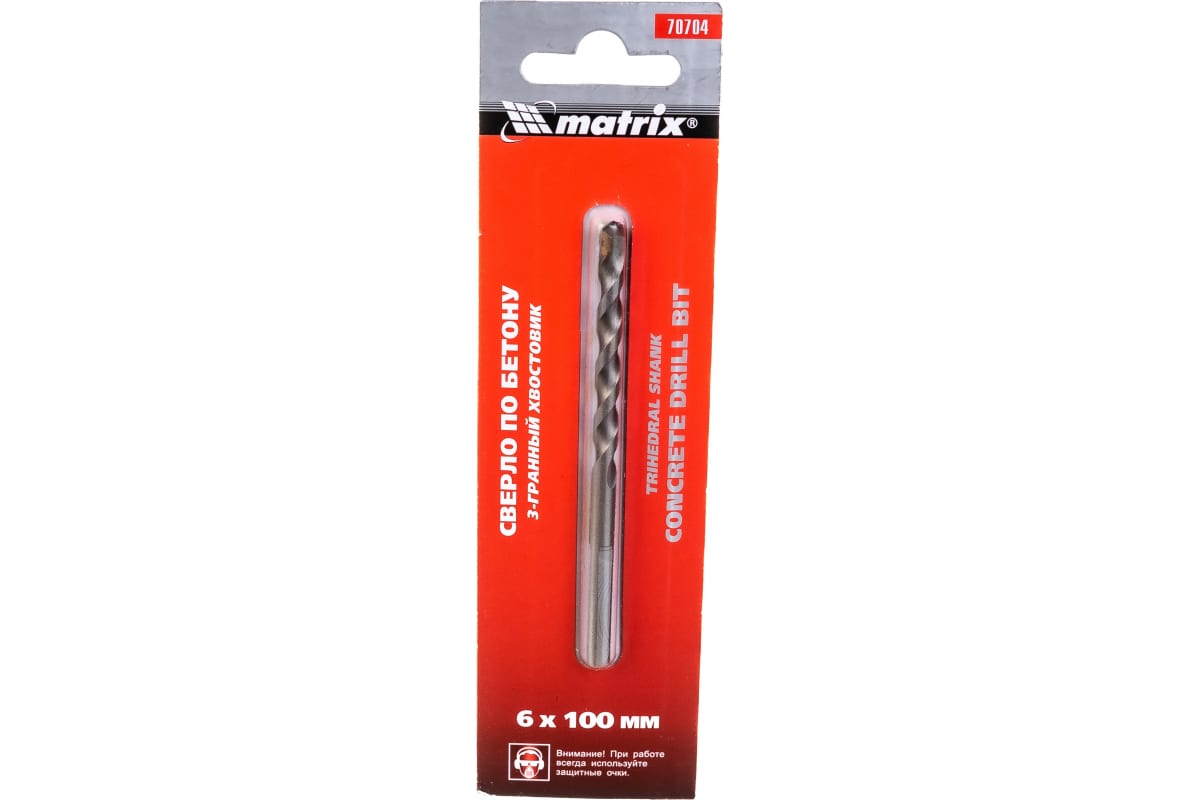 Сверло по бетону Matrix 70704 размером 6 х 100 мм, с 3-гранным хвостовиком, используется для получения отверстий с помощью дрели. Пригодится для сверления бетона, мрамора, керамики и других твердых материалов.