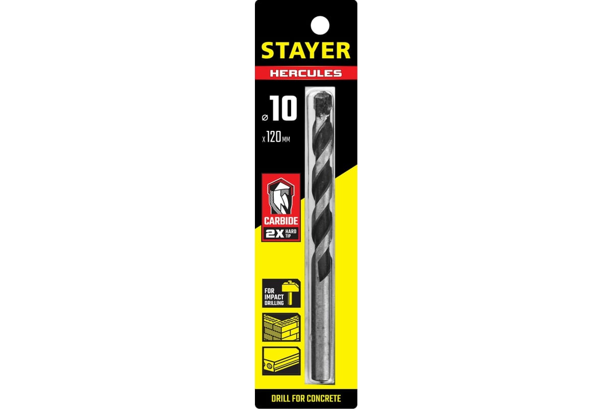 Сверло Professional Hercules STAYER 2915-120-10_z01 служит для сверления отверстий в бетоне, кирпиче,камне и других подобныхтвердых материалах.