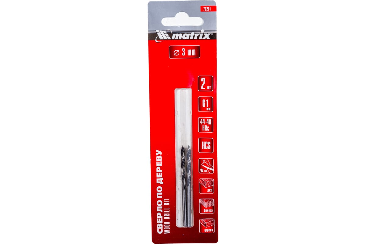 Сверло по дереву Matrix 70201 размером 3 х 61 мм, с цилиндрическим хвостовиком, 2 шт. в упаковке, предназначено для получения небольших по диаметру отверстий в древесине. Особая конструкция обеспечивает эффективный отвод стружки и получение точного и ровного отверстия. Оснастка пригодится при проведении строительных, ремонтных и отделочных работ.