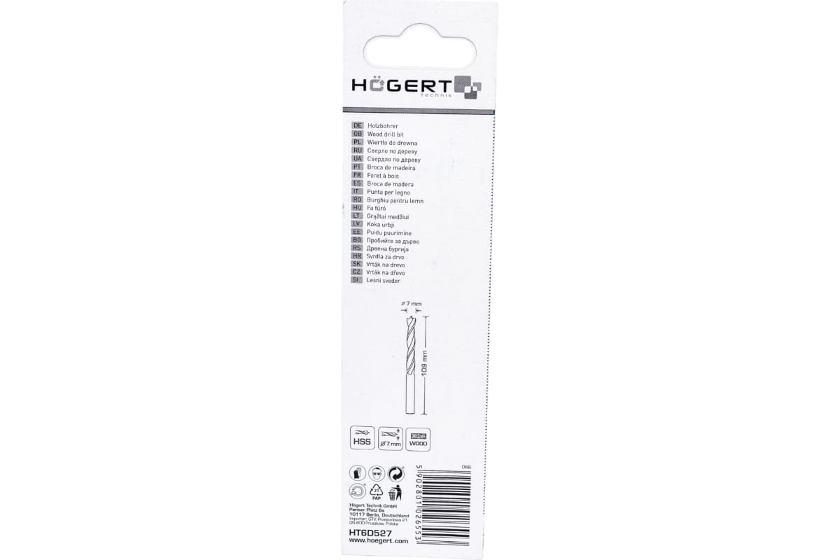 Сверло по дереву (7x105 мм) HOEGERT TECHNIK HT6D527 служит для сверления древесины и древесных материалов, ДСП, ДВП, МДФ.