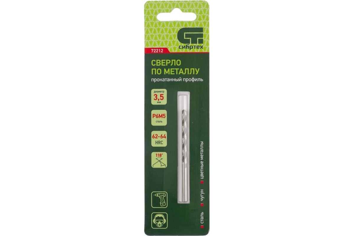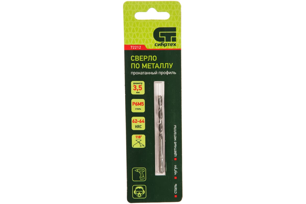 Сверло по металлу Сибртех 72212 из стали P6M5 имеет угол заточки 118 градусов и позволяет получать отверстия диаметром 3,5 мм в черных и тяжелых металлах, в том числе стали, чугуне и твердой бронзе. Сверло отличается наиболее выгодной стоимостью по сравнению с другими моделями из стали P6M5. Используется для монтажно-сборочных работ, будет полезно в быту.