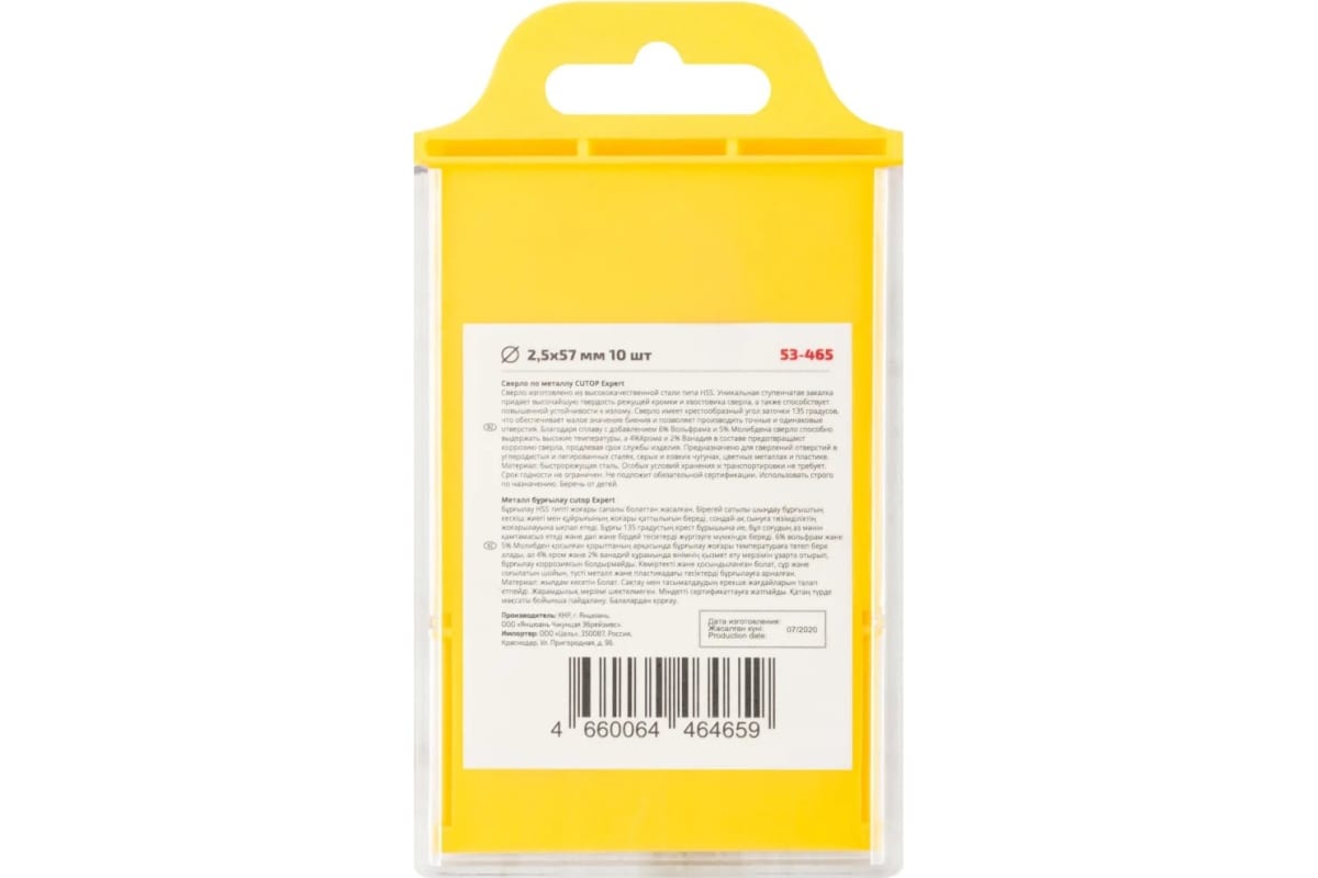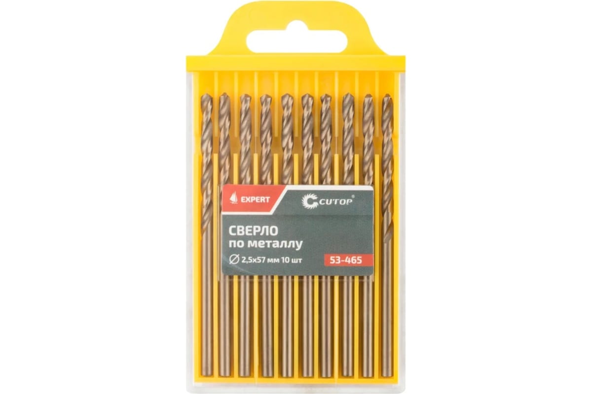 Сверло по металлу EXPERT 10 шт, 2.5x57 мм CUTOP 53-465 предназначено для сверлений отверстий в углеродистых и легированных сталях, серых и ковких чугунах, цветных металлах и пластике.