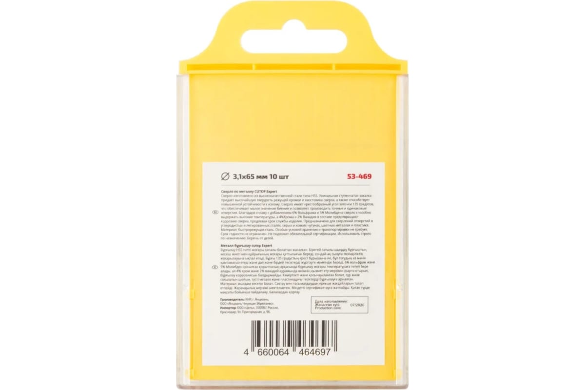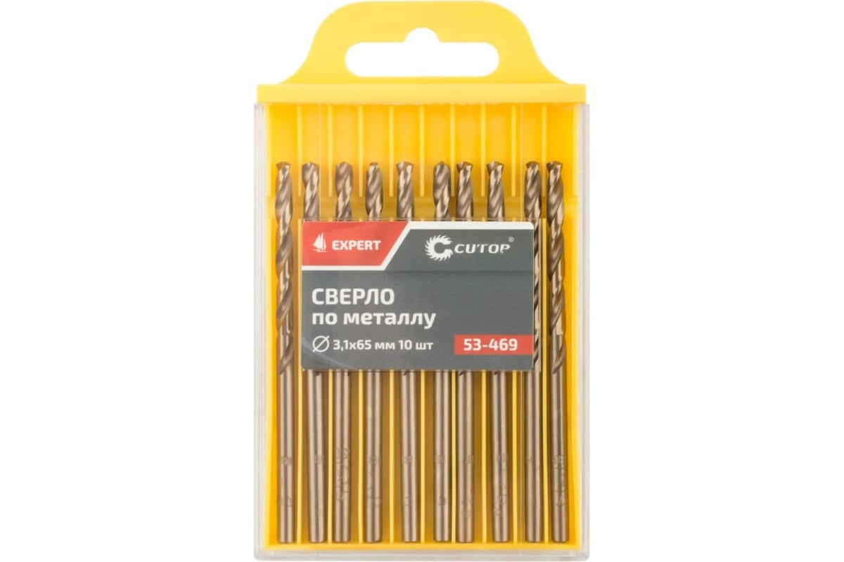 Сверло по металлу EXPERT 10 шт, 3.1x65 мм CUTOP 53-469 предназначено для сверлений отверстий в углеродистых и легированных сталях, серых и ковких чугунах, цветных металлах и пластике.