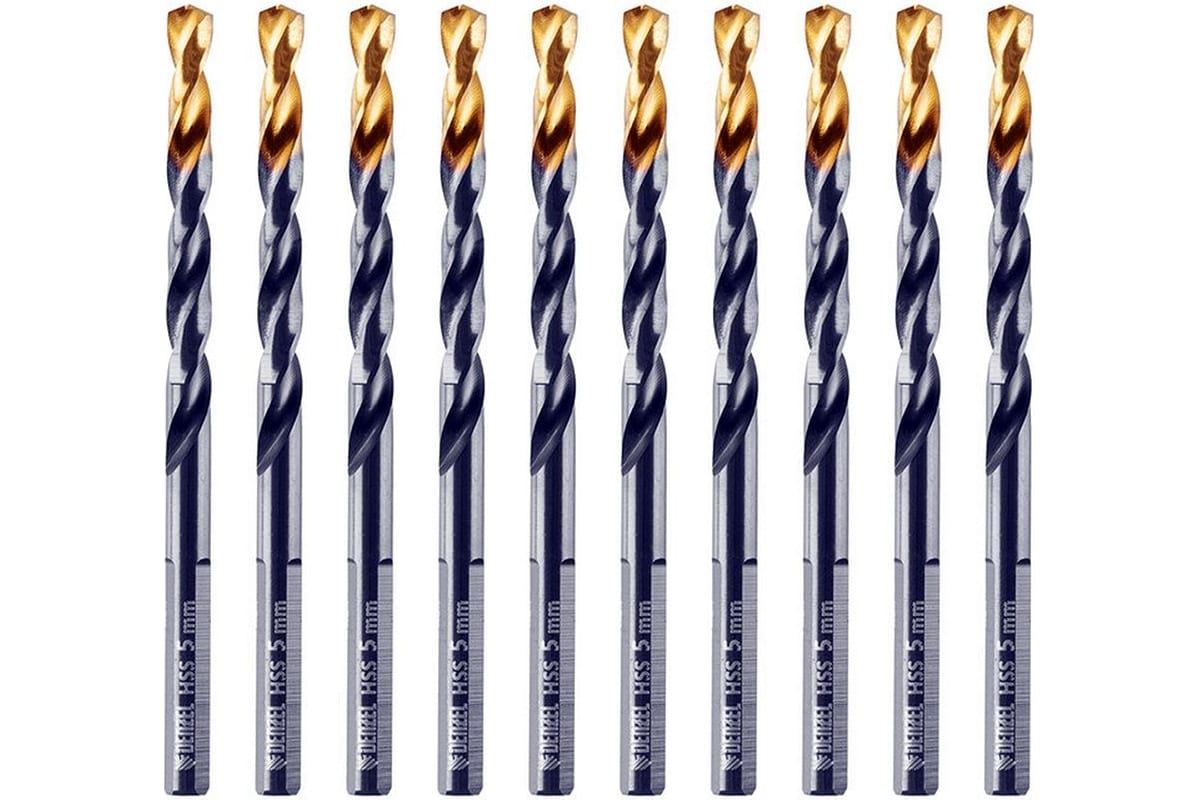Сверло по металлу Golden Tip 5 мм, HSS-Tin, 10 шт, DIN 338 Denzel 717213 предназначено для сверления сквозных и глухих отверстий в легированной и нелегированной стали, железе, чугуне, листовом и цветном металлах, пластмассе.