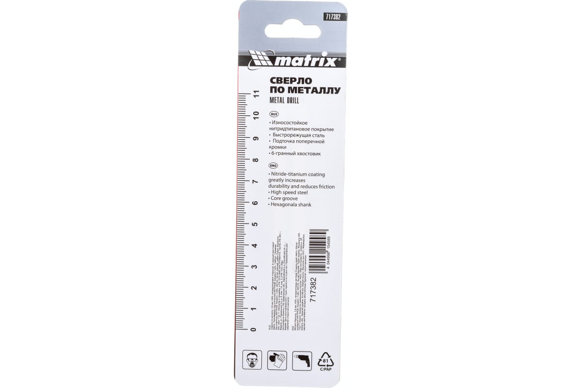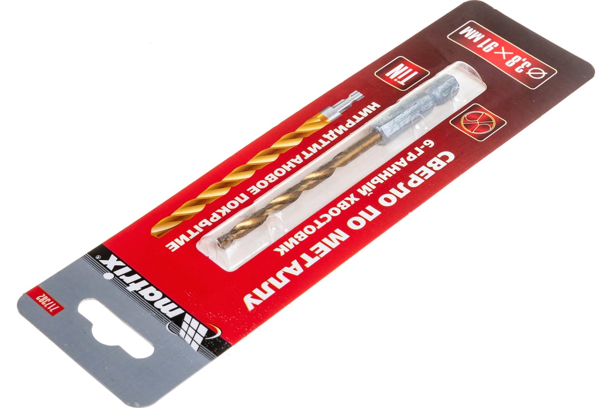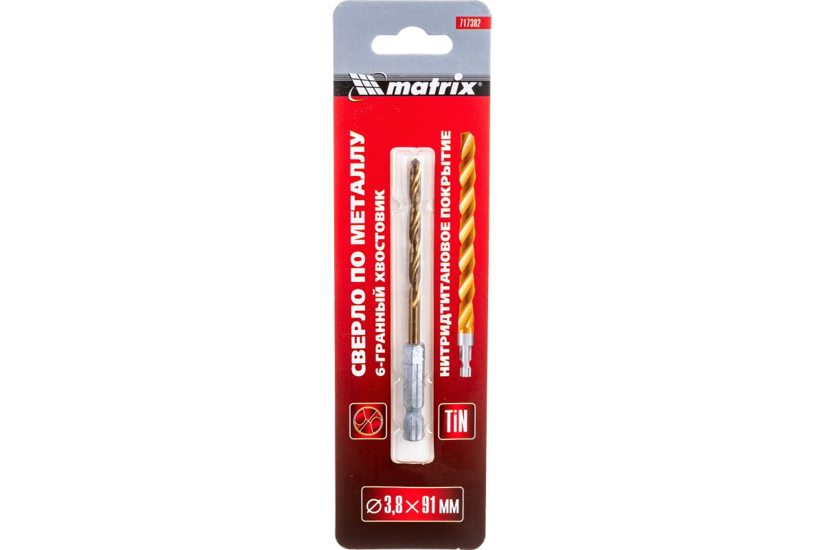 Сверло по металлу Matrix 717382 диаметром 3,8 мм, из стали HSS, с нитридтитановым покрытием и 6-гранным хвостовиком, предназначено для получения отверстий в черном металле, стали, чугуне и твердой бронзе. Устанавливается в патрон дрели.