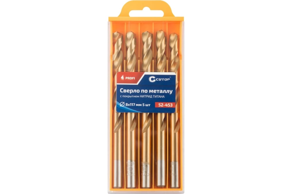 Сверло по металлу с титановым покрытием Profi 8x117 мм, 5 шт CUTOP 52-453 предназначено для сверлений отверстий в углеродистых и легированных сталях, серых и ковких чугунах, цветных металлах и пластике.