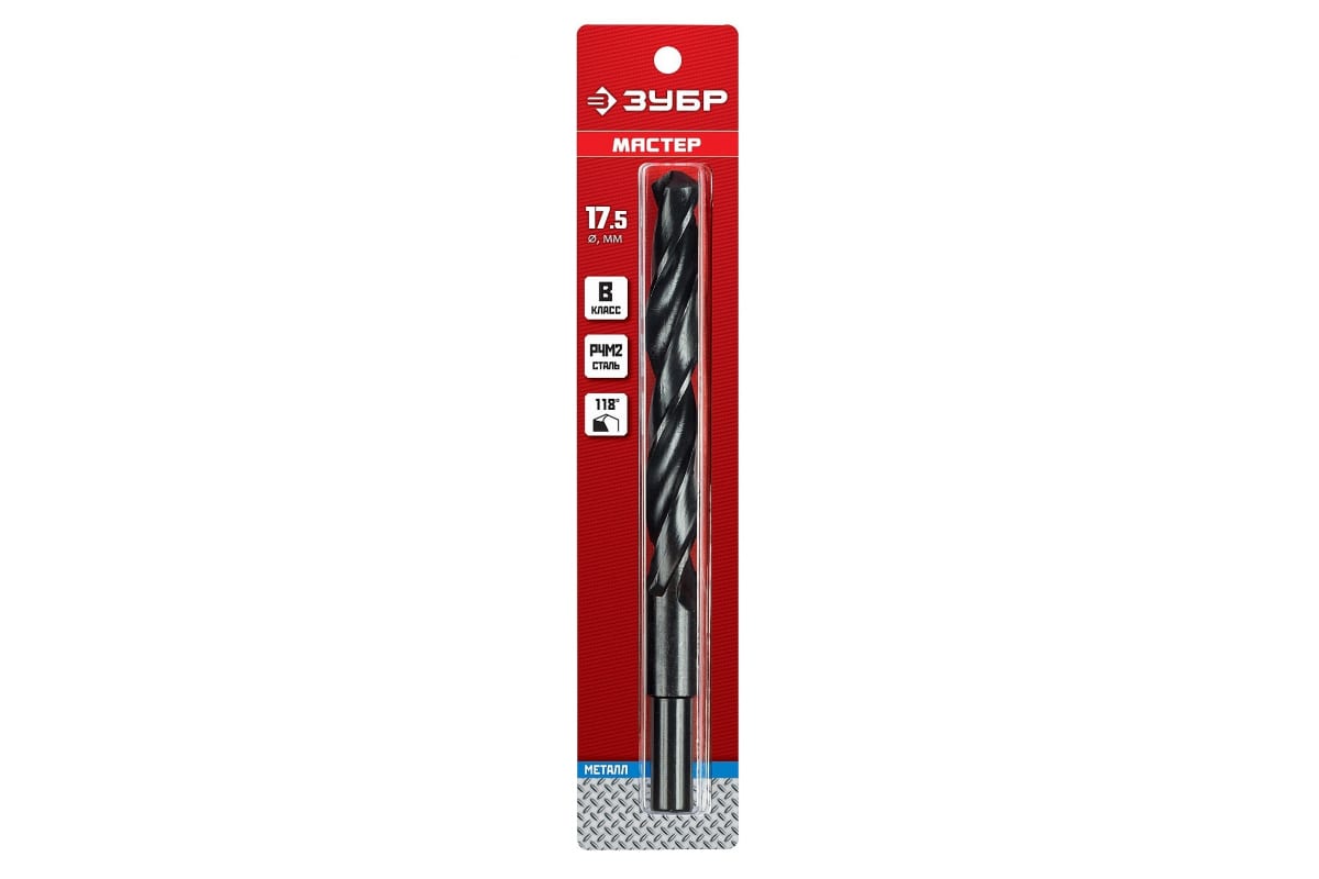 Сверло ЗУБР 29605-17.5, предназначено для обработки легированных и углеродистых сталей, цветных металлов, серого чугуна и пластмассы. Универсальное сверло для большинства задач. Изготовлено методом винтового проката по ГОСТ 10902-77 и соответствует классу точности "В". Угол заточки 118 градусов позволяет обрабатывать легированные и углеродистые стали.