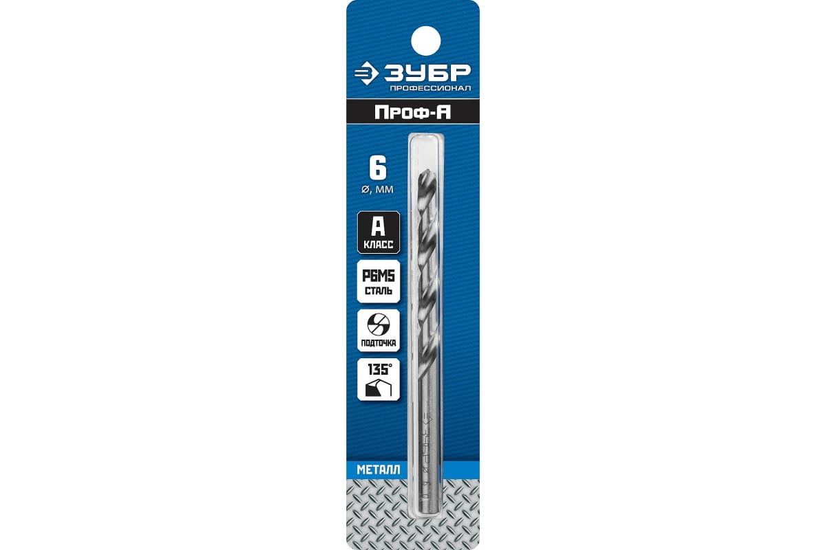Сверло ЗУБР 29625-6, предназначено для обработки легированных и углеродистых сталей с пределом прочности до 900 Н/мм², цветных металлов, серого чугуна и пластмассы. Качественное и точное сверло с большим ресурсом. Сверло изготовлено методом шлифования профиля по ГОСТ 10902-77 и соответствует классу точности сверления "А1". Крестообразная подточка позволяет начать сверлить без предварительного кернения. Угол заточки при вершине равный 135° повышает производительность работ.