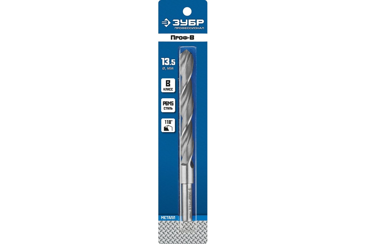 Сверло ЗУБР 29621-13.5, предназначено для обработки легированных и углеродистых сталей с пределом прочности до 900 Н/мм², цветных металлов, серого чугуна и пластмассы. Качественное сверло с высоким ресурсом. Изготовлено методом винтового проката по ГОСТ 10902-77 и соответствует классу точности "В". Угол заточки 118 градусов позволяет обрабатывать легированные и углеродистые стали.
