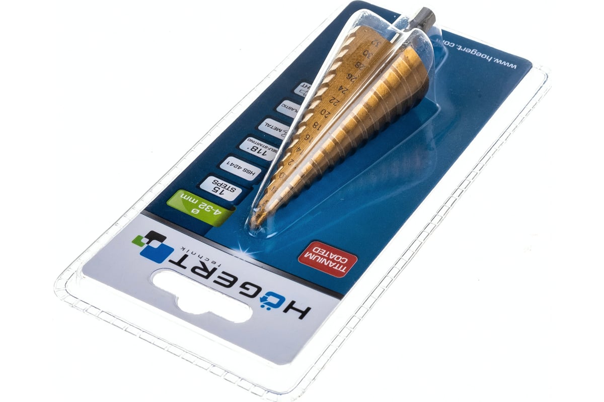 Сверло ступенчатое 4-32 мм HOEGERT TECHNIK HT6D323 предназначено для сверления различных типов стали, цветных металлов, меди, латуни и алюминия, нержавеющей стали, пластика и дерева. Позволяет сверлить точные отверстия. Может применяться в кузовных мастерских, автомастерских и т.д. Для профессионального использования.