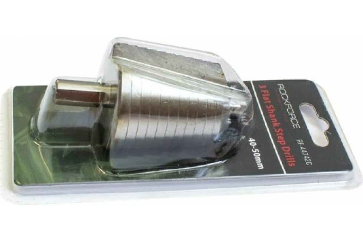 Сверло ступенчатое 40-50 мм, HSS 4241, в блистере Rockforce RF-44742C. 11 ступеней: 40, 41, 42, 43, 44, 45, 46, 47, 48, 49, 50 мм.