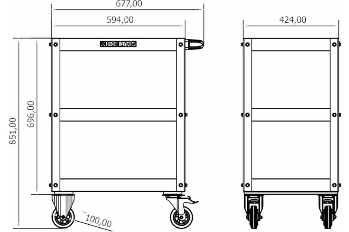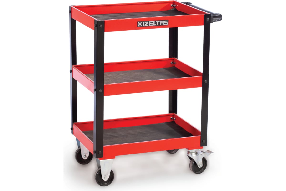 Тележка без инструментов IZELTAS 3 полки 8550348001 изготовлена из листовой коррозионностойкой стали с порошковым покрытием. Оснащена 4 колесами диаметром 100 мм. Два колеса имеют надёжный поворотный узел, позволяя маневрировать в ограниченном пространстве.