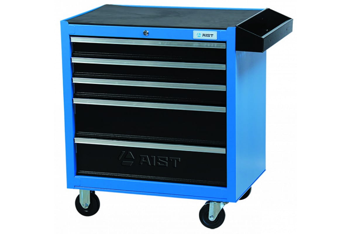 Тележка для инструмента 5-ти секционная выдвижная AIST 90003105 00-00016389 оснащен механизмом салазок на подшипниках, который позволяет полностью выдвигать ящики без риска опрокидывания.