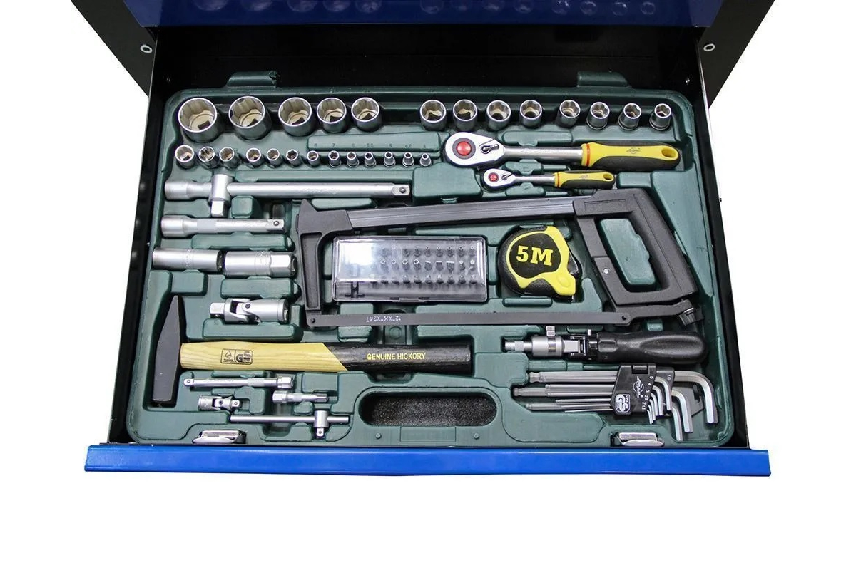 Тележка с инструментом AIST 146 пр. 4-32мм SL-гр 6 ящиков / 0-901146M 00-00024693 включает в себя большое количество инструмента, а также бит и головок для работы с крепежом любой сложности.