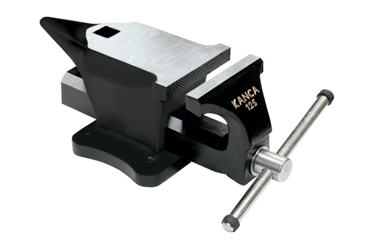 Тиски с широкой наковальней KANCA 125 мм 61602010125 используют для надежного зажима различных деталей в ремонтной мастерской.