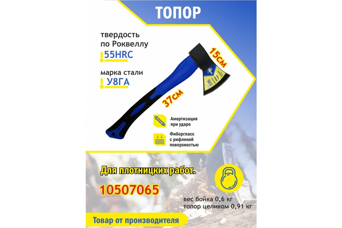 Топор МастерАлмаз с фибергласовой рукояткой 600г 10507065 подходит для работ с древесиной.