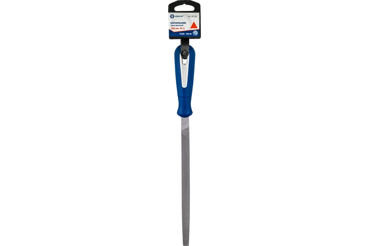 Трехгранный напильник (№ 2, 250мм, подвес) КОБАЛЬТ 247-491 - практичный и надежный инструмент, который используется при обработке деталей из металла. Преимущество использования напильника заключается в особой форме насечек и удобной рукоятке, которая не скользит в ладони.