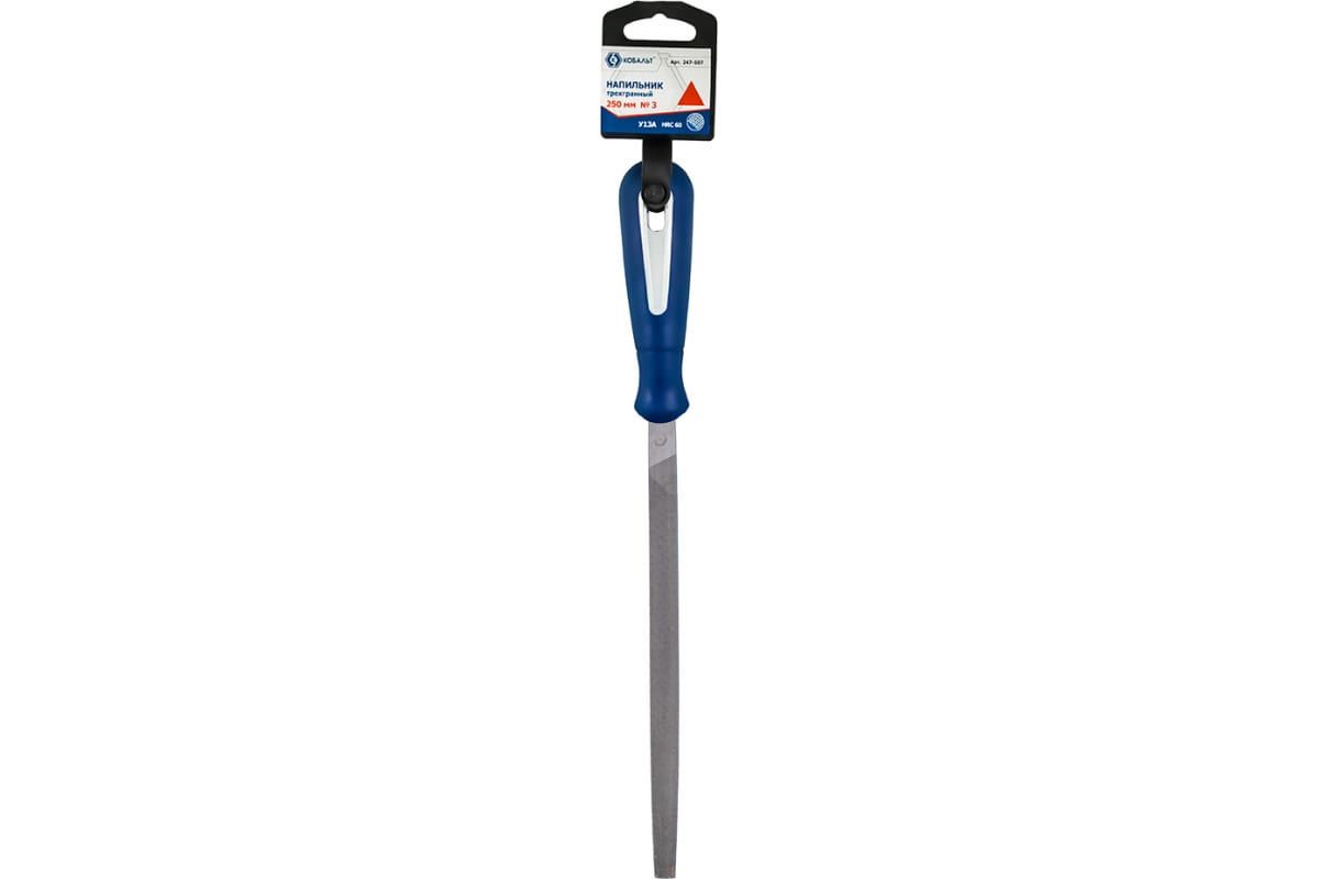 Трехгранный напильник (№ 3, 250мм, подвес) КОБАЛЬТ 247-507 используется для обработки металлических заготовок различных форм и размеров. Благодаря специальной форме насечки и двухкомпонентной рукоятке работать с инструментом легко и просто.