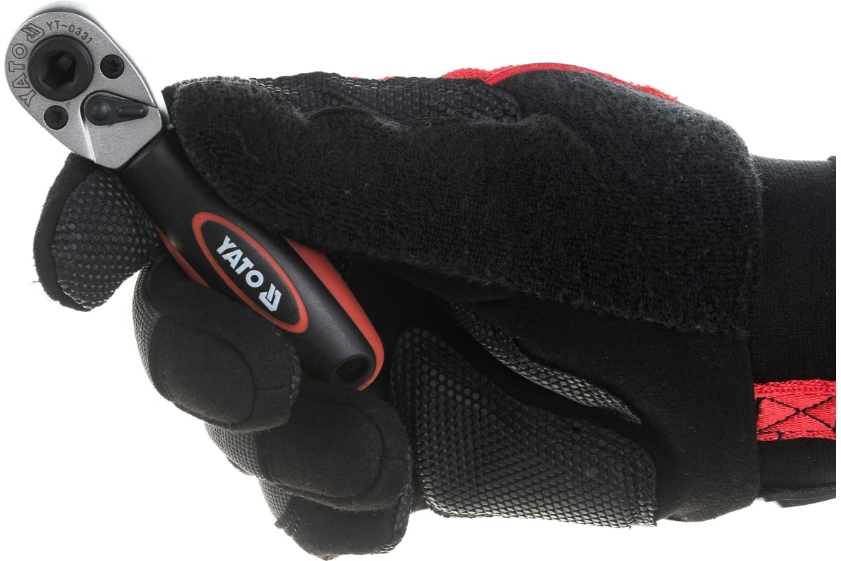 Трещотка для бит YATO и гол. 1/4", CrV, 136мм YT-0331 - это ручной инструмент для закручивания как в правую, так и в левую стороны. На трещотке расположен переключатель для изменения направления вращения храпового механизма.