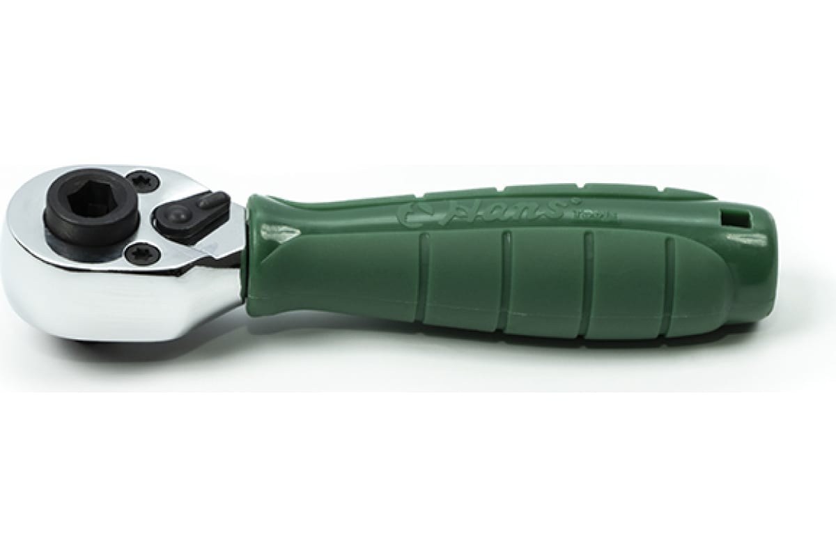 Трещотка с храповым механизмом отличается простотой и удобством в применении. Трещоточный механизм ключа позволит работать им, не отрывая от закручиваемой детали. Резиновая накладка на ручке не позволяет инструменту скользить. Имеет флажок реверса. Без быстрого сброса.