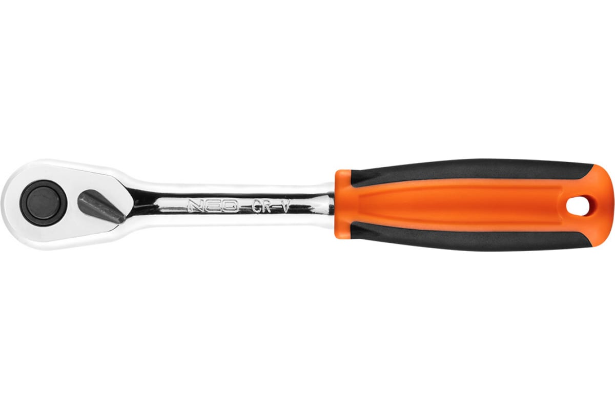 Трещотка NEO Tools 3/8 45 зубьев 200 мм 08-524 имеет храповый механизм с 45 зубцами, что повышает удобство работы в ограниченном пространстве. Трещотка выполнена из хромомолибденовой стали, а корпус - из хромованадиевой, благодаря чему обеспечен длительный срок эксплуатации. Двухкомпонентная накладка на рукояти гарантирует надежный хват и полный контроль над инструментом. Переключатель направления вращения обеспечивает дополнительное удобство при работе.