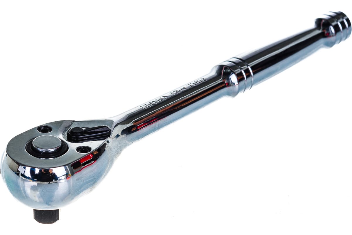 Трещотка с прямой металлической ручкой ЭВРИКА 3/8 72-зубцовая ER-73872 представляет собой удобный инструмент для монтажа и демонтажа крепежных элементов различного вида.