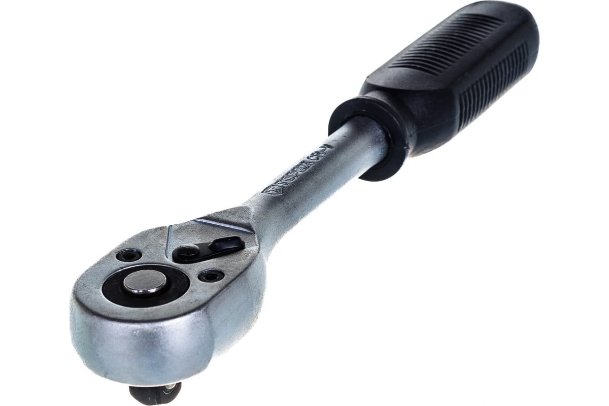 Трещотка TOPEX 3/8 38D522 предназначена для работ с крепежом. Она выполнена из высококачественной хромованадиевой стали в соответствии с DIN 3122, что гарантирует прочность и долгий срок службы. Инструмент оснащен храповым механизмом с 24 зубцами и переключателем направления вращения. Рукоятка не скользит в руке, что обеспечивает комфортную работу.