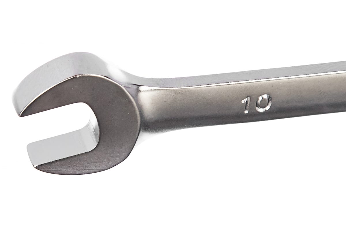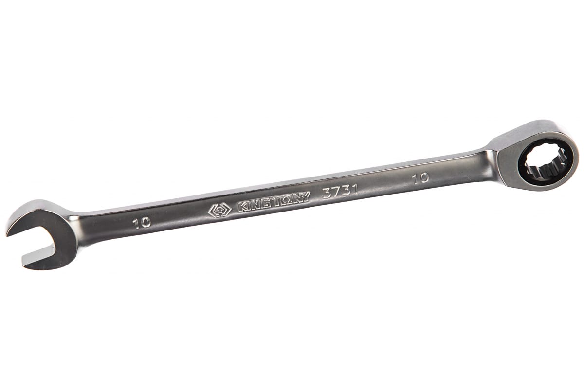 Трещоточный комбинированный ключ KING TONY 10 мм 373110M является прочным и надежным инструментом, который предназначен для монтажа и демонтажа крепежа. Ключ оснащен двумя головками: рожковой и накидной с трещоточным механизмом. Корпус изготовлен из прочной хромованадиевой стали. Размер - 10 мм.