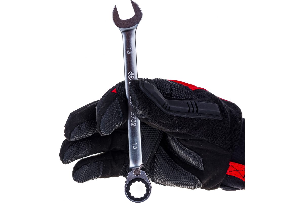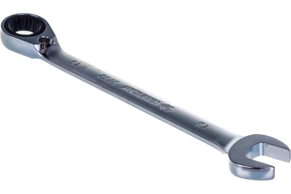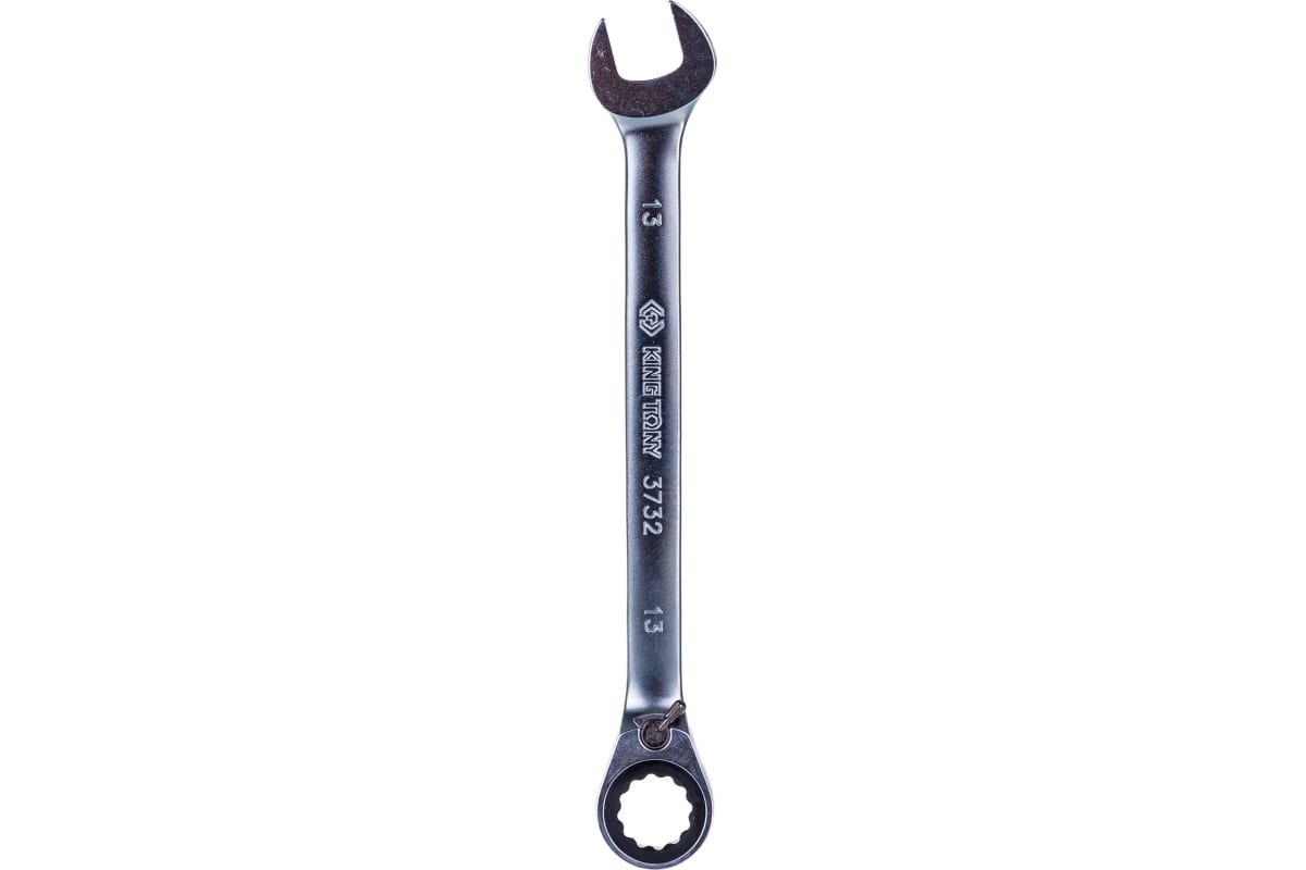 Трещоточный комбинированный ключ с флажковым переключением KING TONY 13 мм 373213M представляет собой ручной инструмент, который применяется в автомастерских или гараже. Ключ оснащен двумя головками, трещоткой и флажковым переключателем для смены направления закручивания. Корпус изготовлен из хромованадиевой стали.