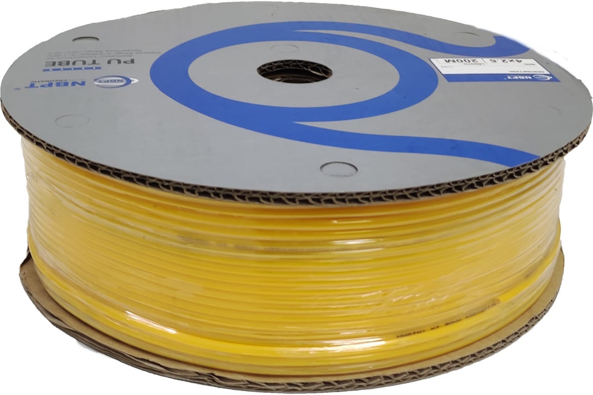 Трубка PU 4х2.5 мм, 200 м, цвет желтый NBPT 52150 используется для передачи воздуха в пневматических системах стандартного давления.