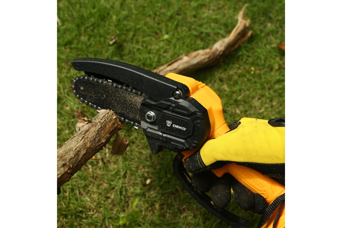 Цепная аккумуляторная пила DEKO DKCHS 20-4, 20В, 2x2.0 А*ч 063-4308 незаменима при работе в мастерской или в саду для распиливания различных материалов. Предназначена для пропилов в древесине и пластмассе. Инструмент работает от литий-ионного аккумулятора.
