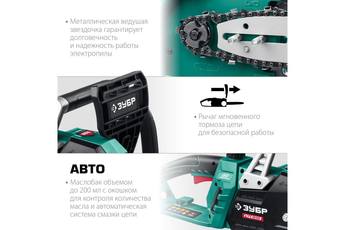 Цепная электрическая пила ЗУБР 1800 Вт ПЦ-1835 - универсальный и надежный помощник для валки деревьев, а так же пиления веток, обрезки сучьев, пиления деревянных бревен и проч.