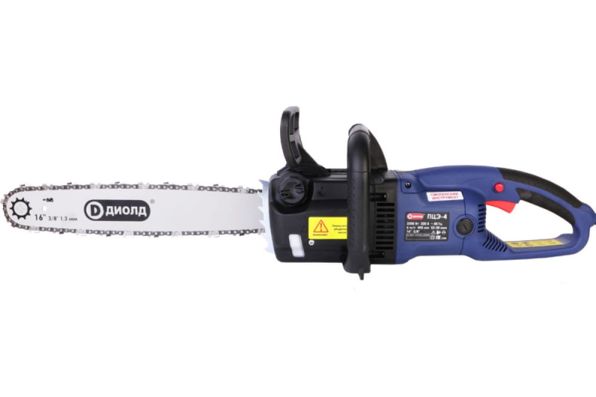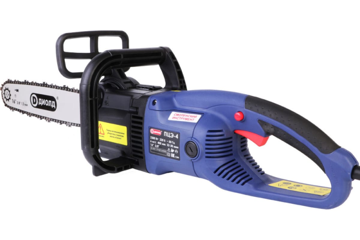 Цепная электрическая ручная пила ДИОЛД ПЦЭ - 4 10191110 используется для распиловки древесины в быту.