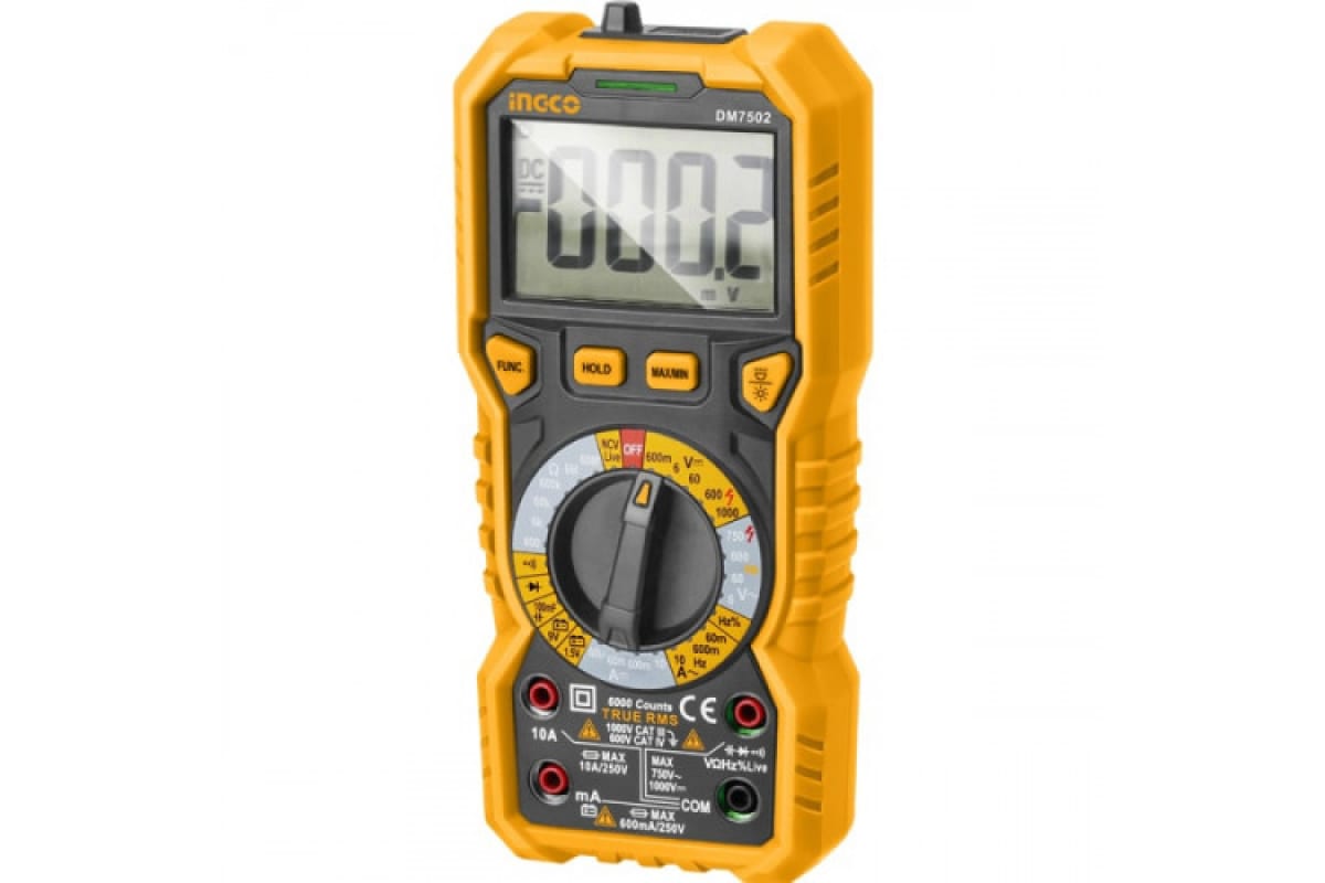Цифровой мультиметр INGCO INDUSTRIAL DM7502 подходит для измерения большого количества параметров. Пригодится в любой мастерской. Имеет удобный переключатель, с помощью которого легко выбрать необходимый диапазон.